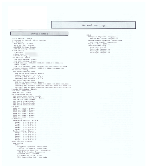 You can print network setting information such as TCP/IP setting of the main body side in list view.
