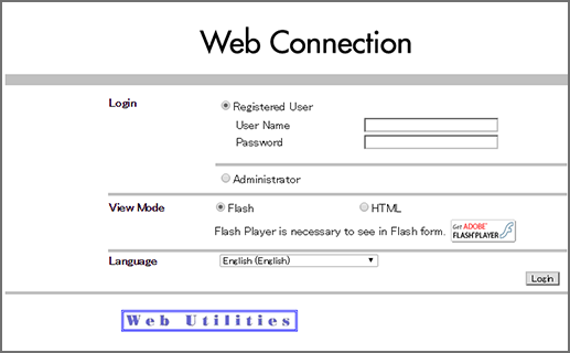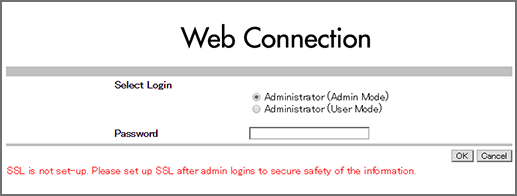 Accessing with Web Connection displays the login screen when User Authentication or Account Track is enabled on the machine. When re-logging in to this machine as a different user or as an administrator, log out once, and log in again.