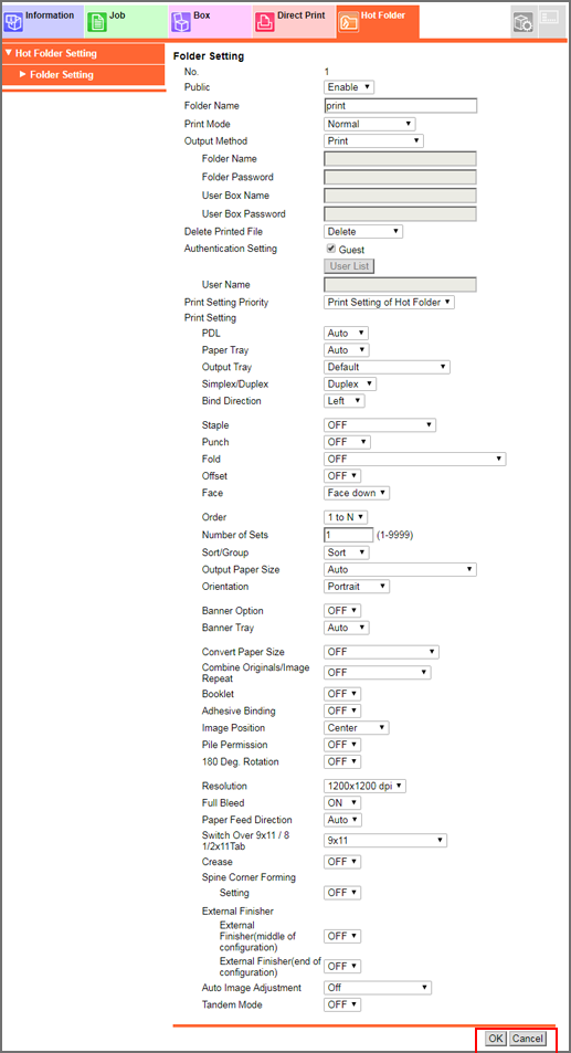 • If you access a folder immediately after changing its folder settings, an OS error screen may be displayed. In that case, wait approximately 10 seconds before accessing it again.