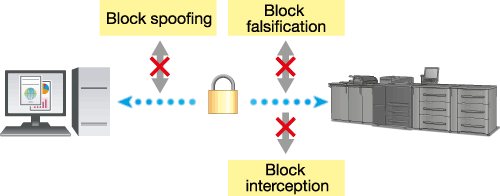 Using the certificate issued from CA (Certificate Authority) | Create certificate issuance request data on the machine, and request a reliable CA (Certificate Authority) to issue the certificate of the machine. After the examination in CA has been completed, register the data returned from CA on the machine. For details, refer to Requesting issue of certificate or About Device Certificate Setting. |