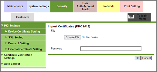1. Click the radio button for Import Certificates, then click OK.