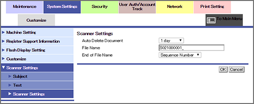 Click Scanner Settings - Scanner Settings on the menu of System Settings tab to display this screen.
