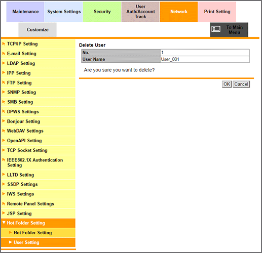 Click OK on the confirmation screen. Click Cancel to cancel the deletion.