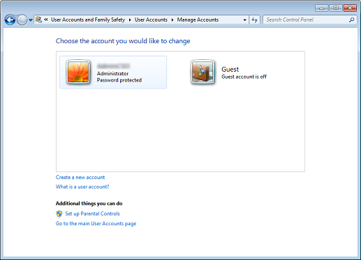 Click Start - Control Panel - Add or remove user accounts in sequence.