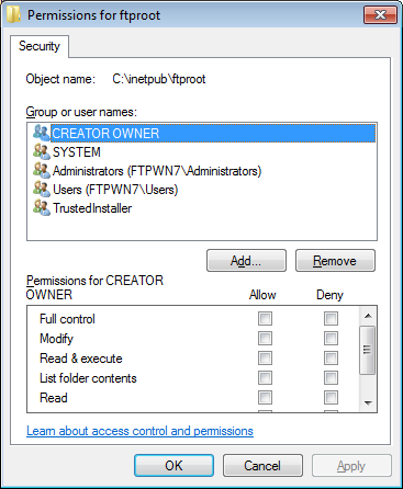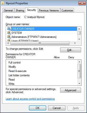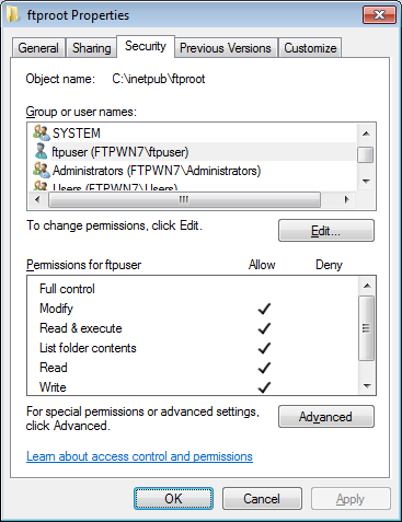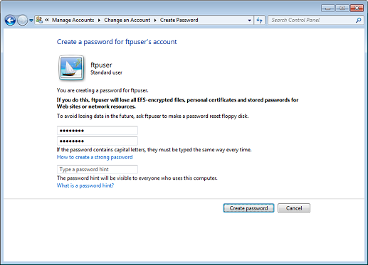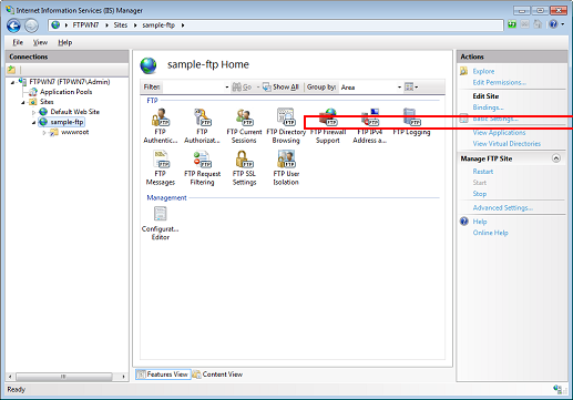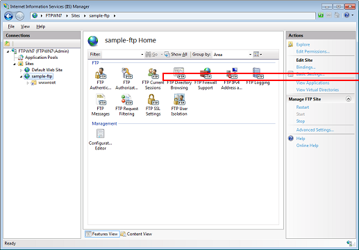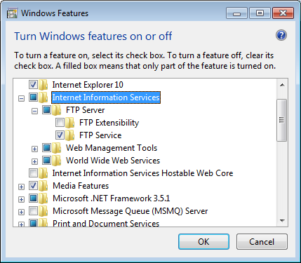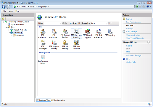Set up an FTP site on Windows 7 by using Microsoft FTP Service.