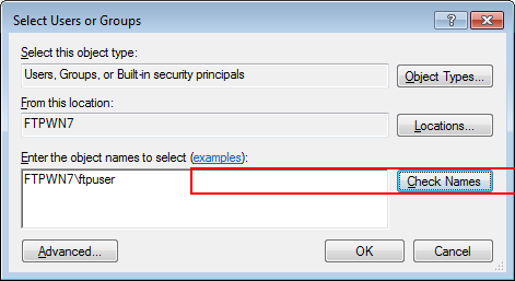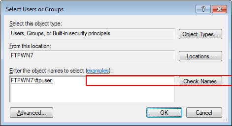 In the Enter the object names to select field, enter computer (or domain) name\user name and click Check Names.
