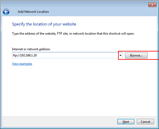 - ftp://ftpuser@<the IP address of the computer set up the FTP site>