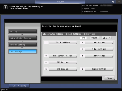 1. Follow the procedure described in Using the Control Panel for Setting to display the NIC Settings screen.