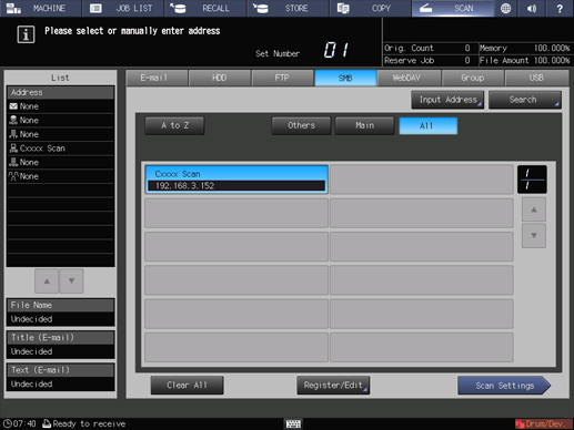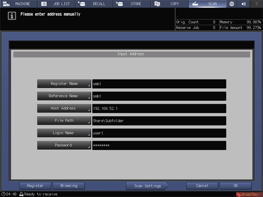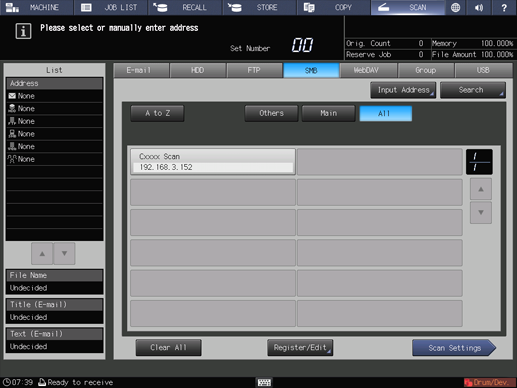supplementary explanationTo select a registered address, refer to When using the registered SMB server.