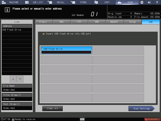 Perform the following steps to save scan data on a USB flash drive.