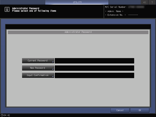 Press Security Setting on the Administrator Setting Menu screen, and then press Administrator Password.