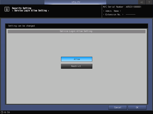 The administrator can restrict the usage of the service mode by a customer engineer (CE) when the Enhanced Security mode is set to ON.