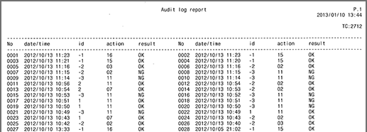 54 | Power-off (Exit of audit function) * Main power | Unregistered ID | OK |