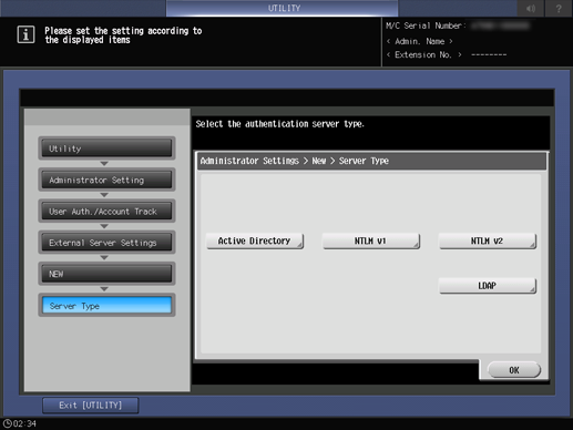 Select the desired one of Active Directory, NTLM v1, NTLM v2, and LDAP, and configure the contents.
