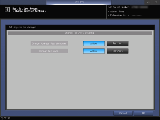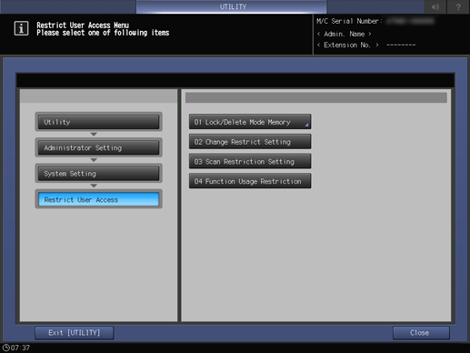 2. Press System Setting, Restrict User Access, and Change Restrict Setting in sequence.