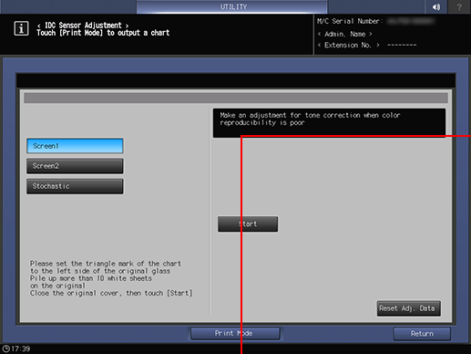 Press System Setting on the Administrator Setting Menu screen, and then press Expert Adjustment, Quality Adjustment, and IDC Sensor Adjustment in sequence.
