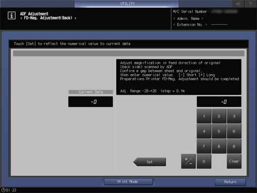 Press System Setting on the Administrator Setting Menu screen, and then press Expert Adjustment, ADF Adjustment, and FD-Mag. Adjustment (Back) in sequence.