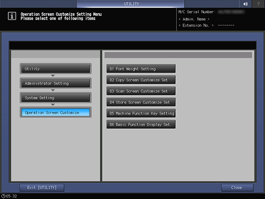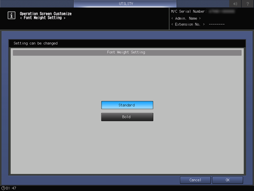 2. Press System Setting on the Administrator Setting Menu screen, and then press Operation Screen Customize and Font Weight Setting in sequence.