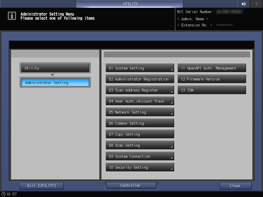 Follow the procedure on Displaying the Administrator Setting Menu Screen to display the Administrator Setting Menu screen.