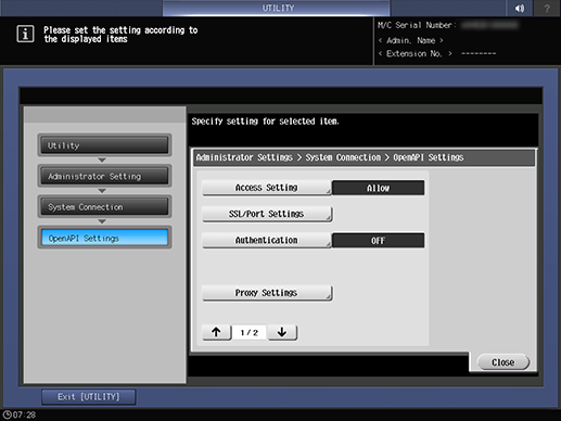 Press System Connection on the Administrator Setting Menu screen, and then press OpenAPI Settings.