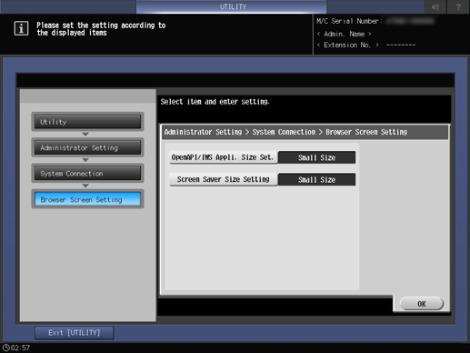 Press System Connection on the Administrator Setting Menu screen, and then press Browser Screen Setting.
