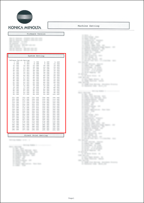 The condition of the Software Switch you can check the report of the Machine Setting. For details, refer to Report Type.