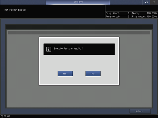 When the confirmation screen is displayed to check whether to execute restore processing, press Yes.