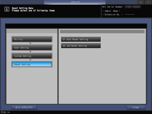 2. Press System Setting on the User Setting Menu screen, and then press Reset Setting and Auto Reset Setting in sequence.