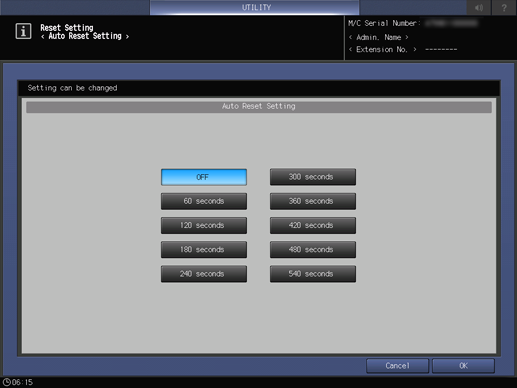 Use this setting to specify the period of time to elapse before Auto Reset is activated.