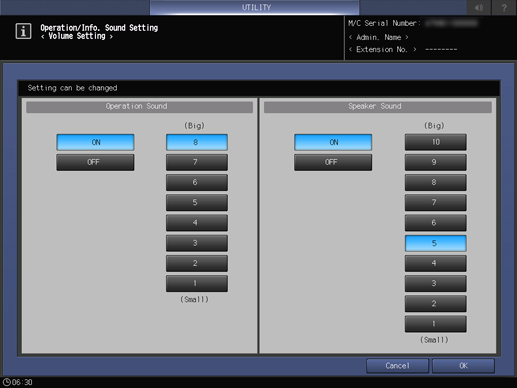Specify whether or not to sound the Touch Panel key operations and speaker, and their volume.
