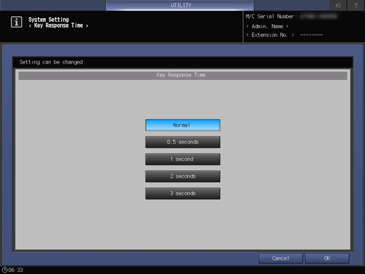 Select the time interval to get the response from the machine when a key or button is pressed on the touch panel or control panel.