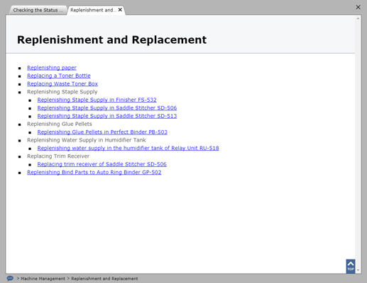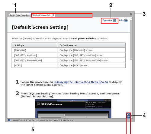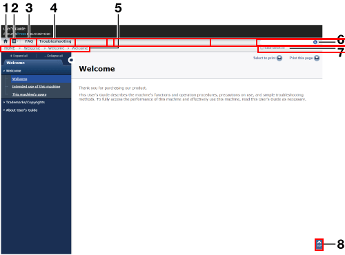 If you click each menu in the User’s Guide, the details of contents are displayed on the text page.