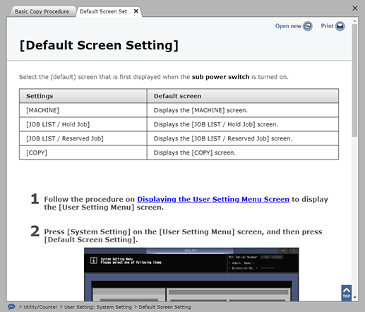 Clicking Print this page on the upper right of the screen prints the displayed page.