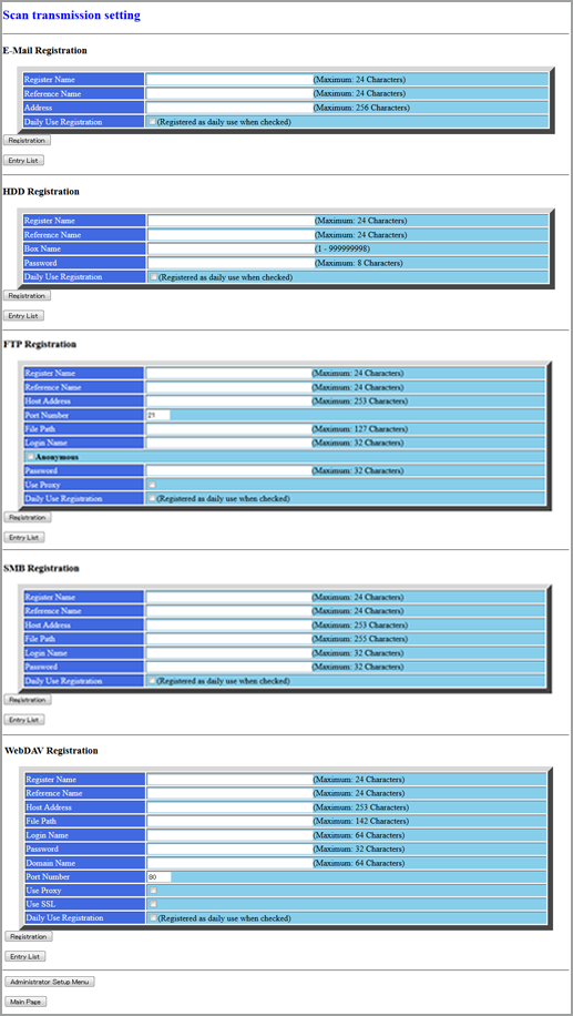 You can configure the scan transmission function that is part of the Administrator Setting using a web browser.