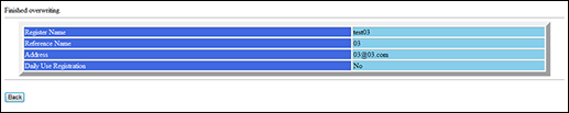 supplementary explanationClick on Back. The screen returns to the Registered List screen.