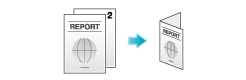 The pages in the original data are arranged and spread out in booklet format and printed on both sides of sheets. You can also specify the binding position, or insert front and back covers.