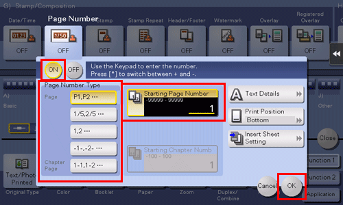 4. Tap [ON] and configure the respective items for print and bind operation.