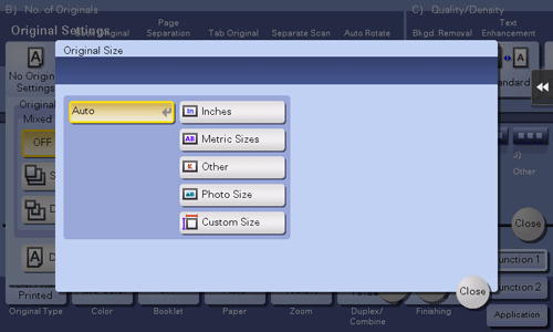When the size of the original is not detected correctly, specify the size of the original you want to scan. If the machine cannot detect the size of irregular sized originals or photos, manually specify the size.