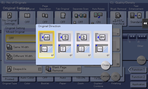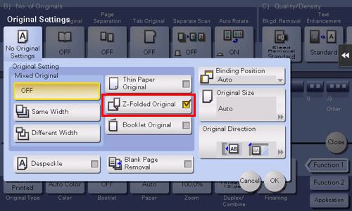 If a folded original is loaded into the ADF, the original size may not be able be detected accurately. When [Z-Folded Original] is specified, the original size can be accurately detected even for the folded original sheets.