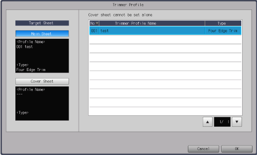 Set a trimmer profile to both [Main Sheet] and [Cover Sheet].