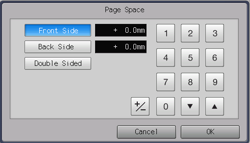 Pressing [+]/[,] increases or decreases the numeric value in steps of 0.1 mm.