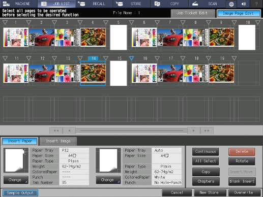 Touch panel - [MACHINE] - [JOB LIST] - [Hold Job] - [Page Edit] - [Image Page Edit] | |||