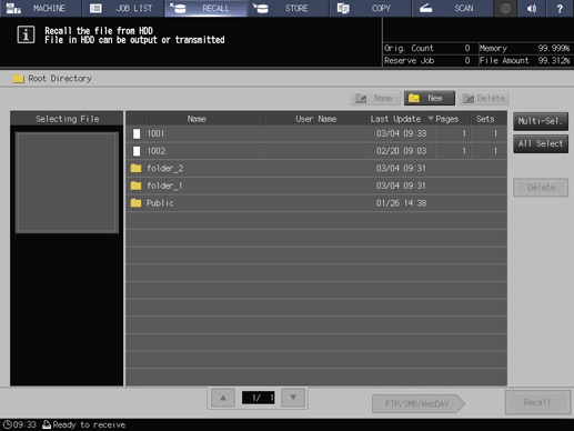 Screen access | Touch panel - [RECALL] - [New] | ||