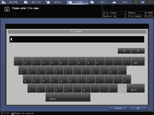 Set the destination to store the job that scanned the original. A file name can also be specified.