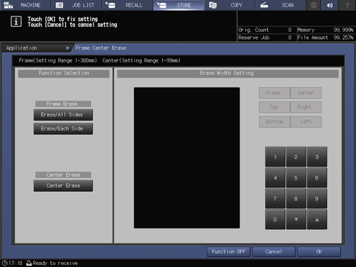 This function erases black copy marks along the borders or center lines of the book that is placed on the Original glass.