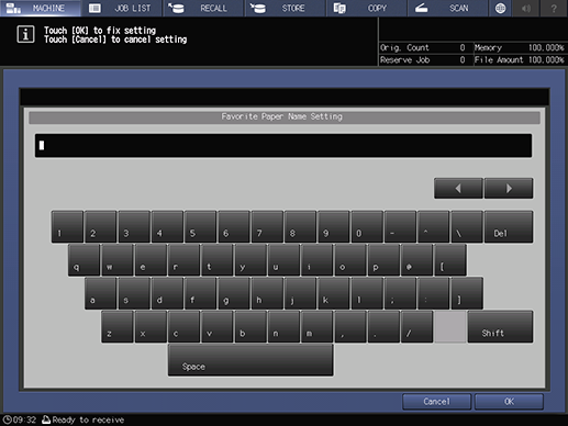 Touch panel - [MACHINE] - [Paper Setting] - [Register] - [Paper Type] | |||