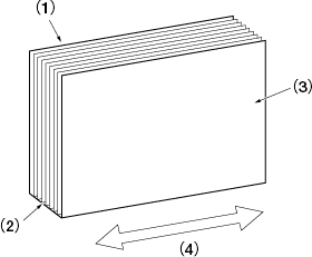 (1) Left cover (2) Spine (3) Right cover (4) Scanning direction