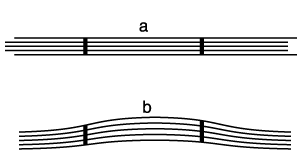 b: A distortion occurs in punch holes if the pitch of the alignment plate is narrower than the paper width.