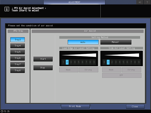 Touch panel - [MACHINE] - [Adjustment] - [PFU Air Assist Adjustment]