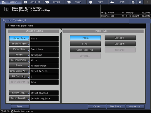 Touch panel - [MACHINE] - [Reg./Del.PaperSet.] - [Add/Edit]